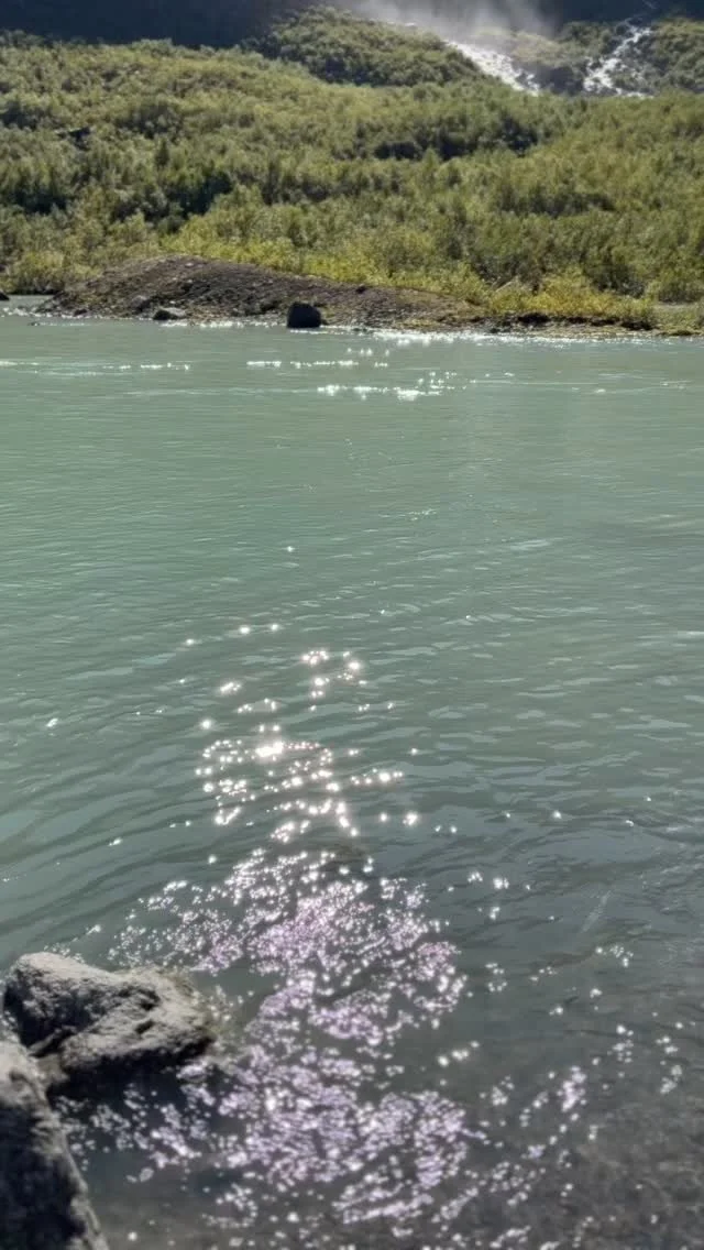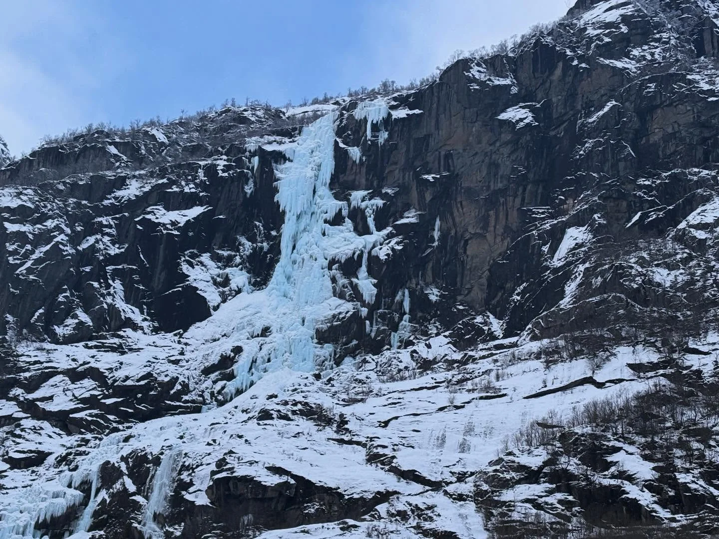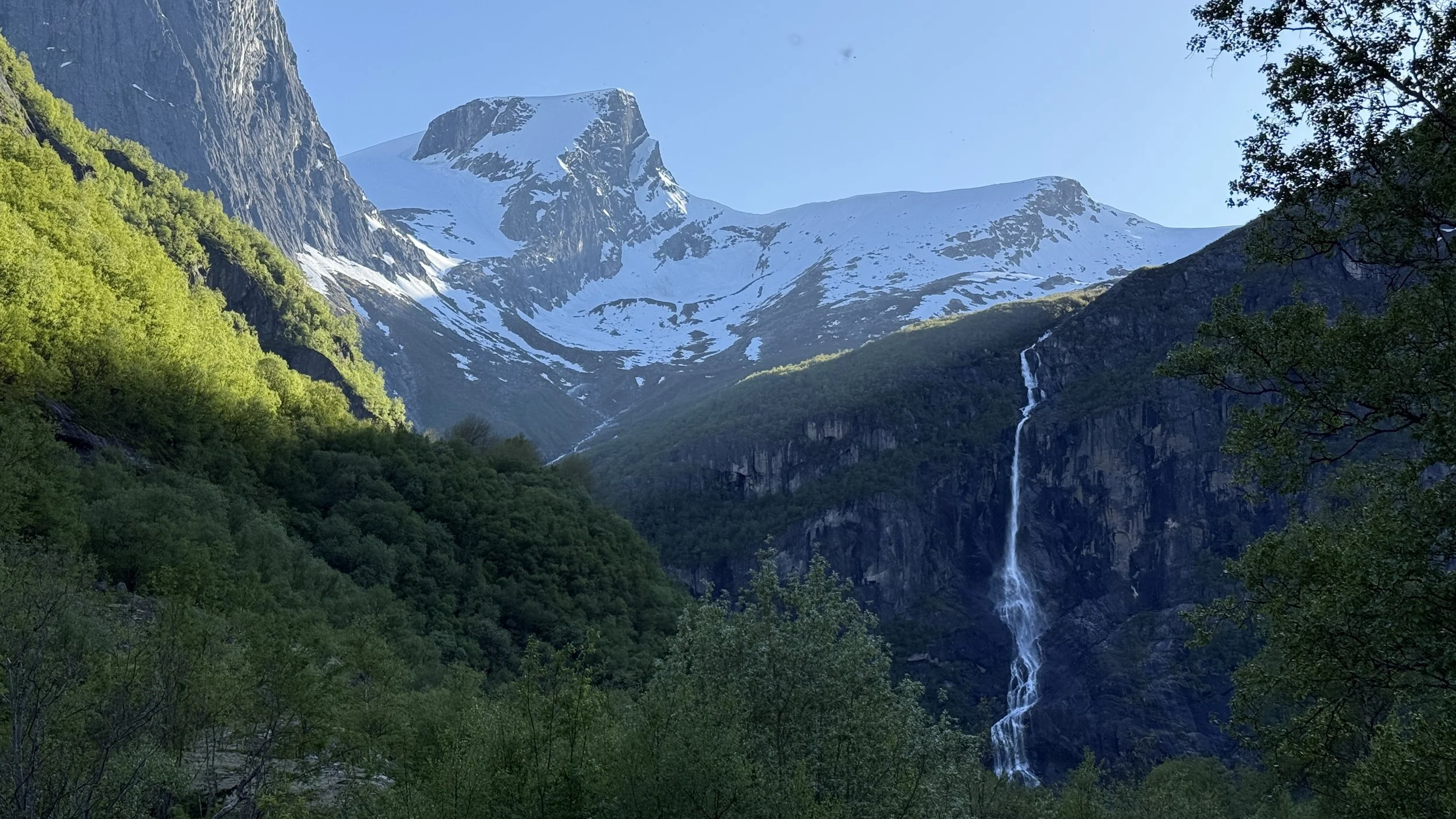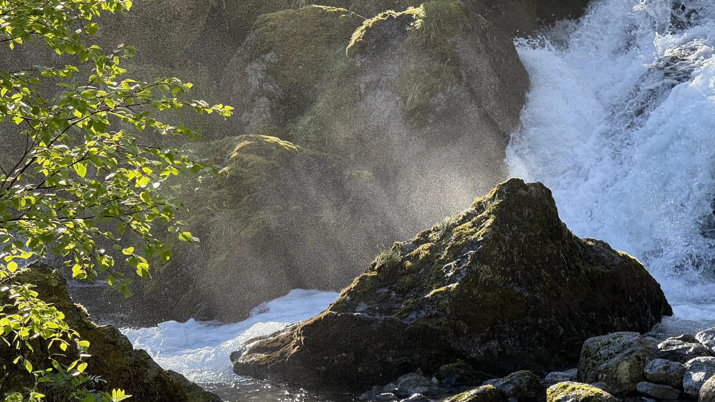 The location is simply spectacular! A high waterfall thunders directly above, and the view of the glacier and mountain landscape is fantastic all around.