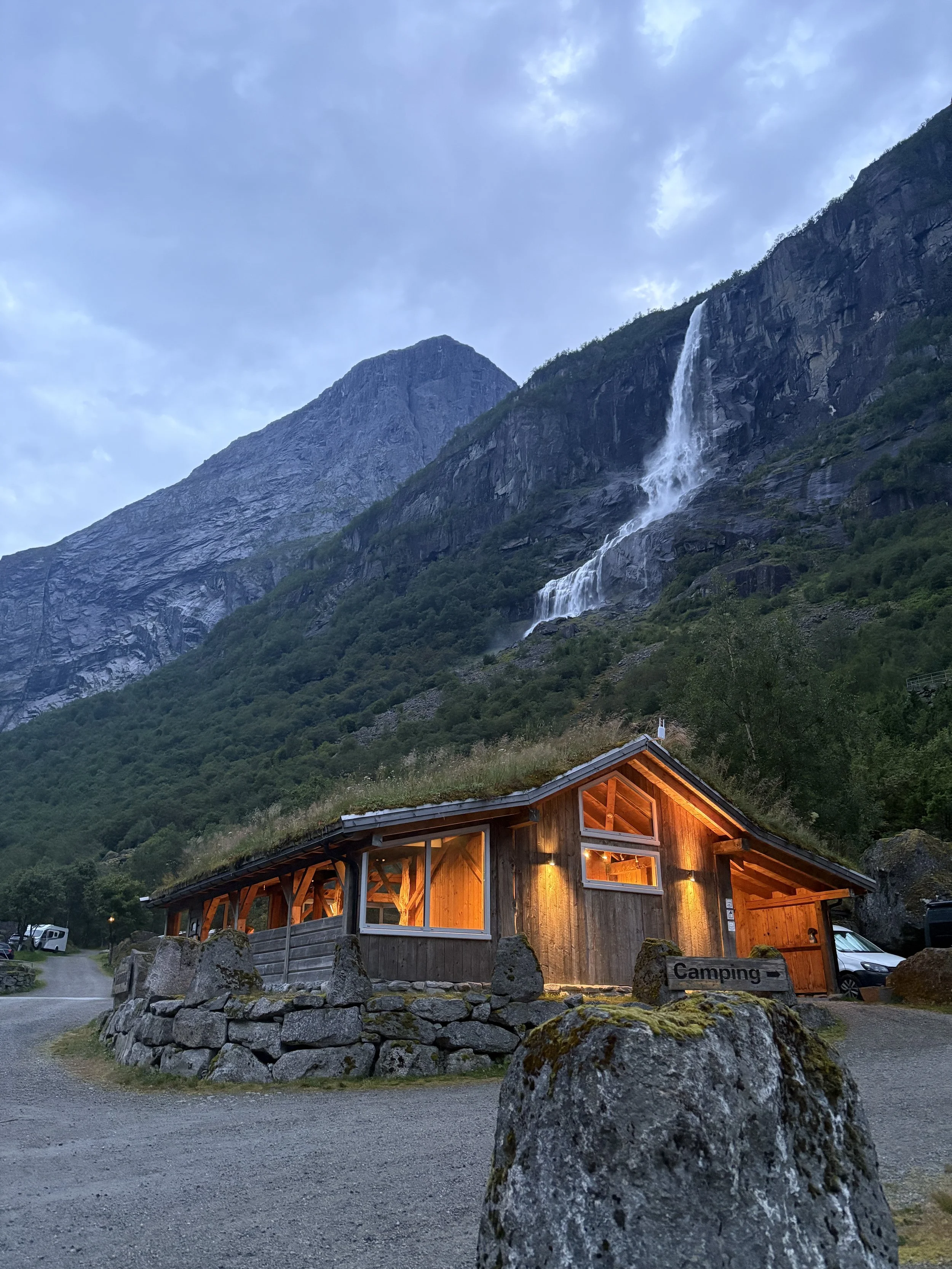 Melkevoll Bretun is a camping in nature surrounded by glaciers, mountains and waterfalls.