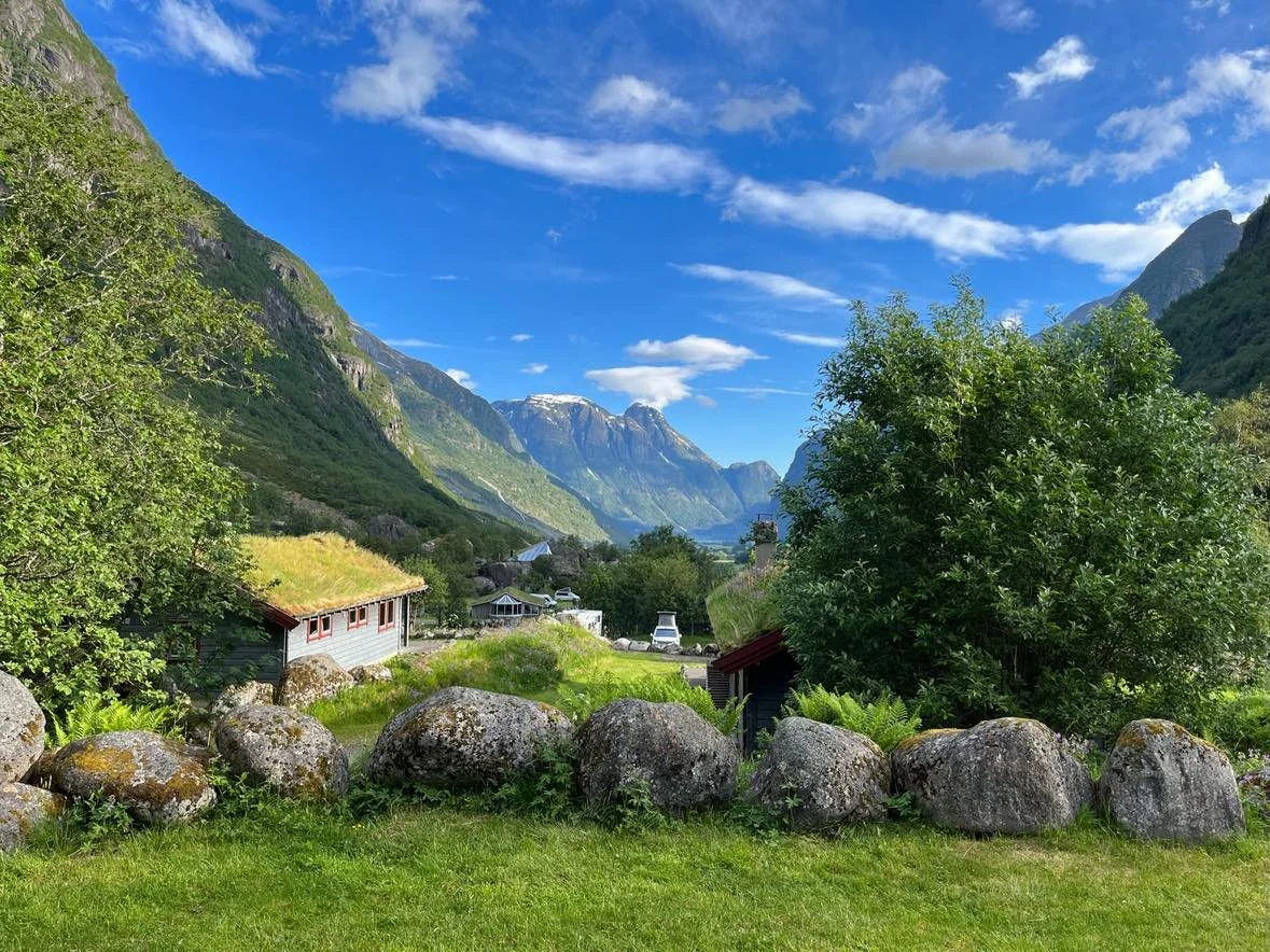 In 2018 when the Blue Mountain Hall was built, Frank and Johanne B. Melkevoll moved back to Oldedalen to settle with their little family. Since 2010 we had held yoga classes and also courses and retreat at Melkevoll Bretun. From 2020 we took over the camping, and from 2025 also the owners of Melkevoll and Bretunet.