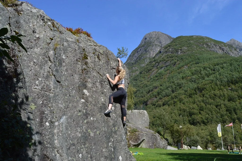 Around the camping there are various climbing routs; “Boulders”, that are popular among climbers. For kids it is alot to explore in nature (with the parents watchful eye always” and a small playgroun the campsite we have various big stones where there are created so called “bouldering routes”. Every summer we have climbers here exploring the various climbing boulders.